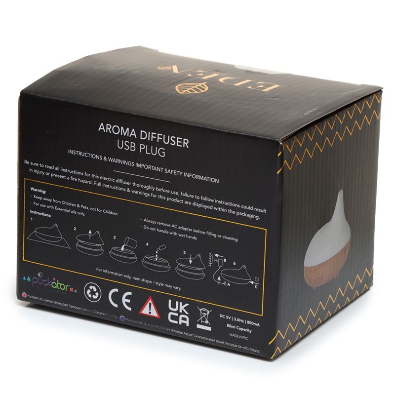 - Informazioni sul prodotto: Il prodotto viene fornito con tutte le parti incluse. Il prodotto viene fornito completo di istruzioni per l'uso, la conservazione e la sicurezza, da leggere prima dell'uso. Da utilizzare solo con acqua e oli essenziali, non utilizzare altri liquidi. Il diffusore ha una capacità massima di 80 ml di liquido, non riempirlo eccessivamente e non riempirlo durante l'uso.