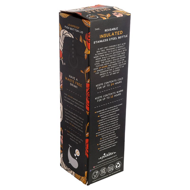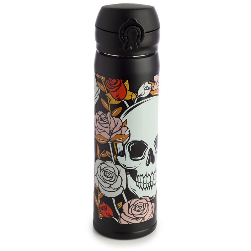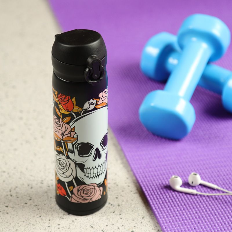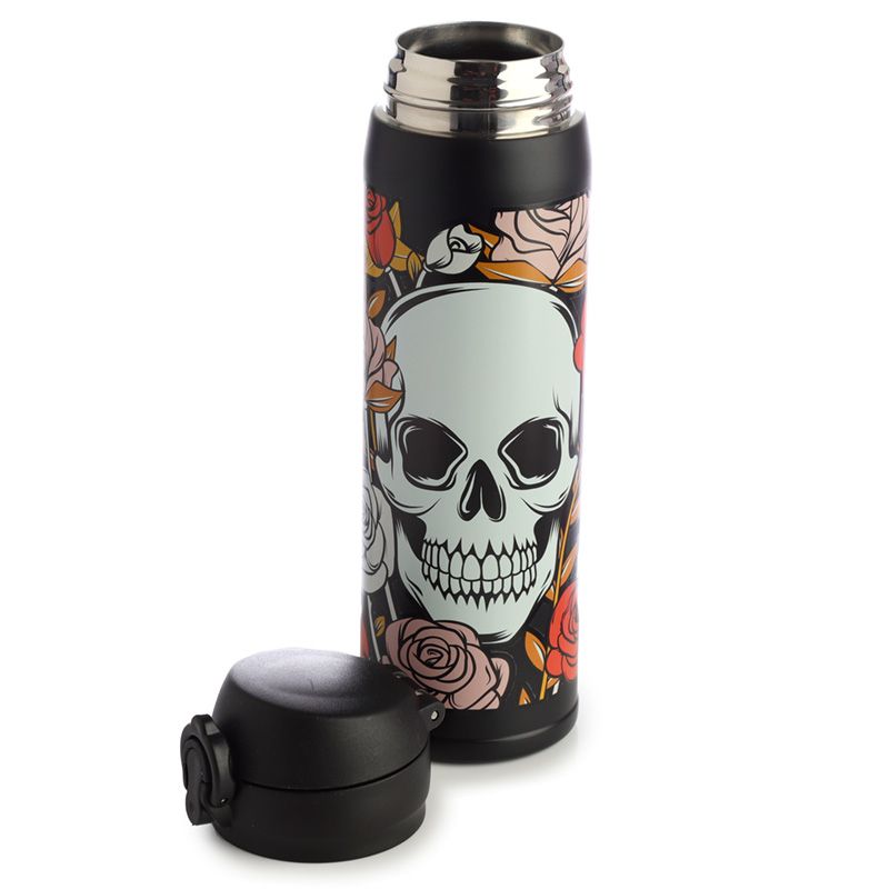 Borraccia Termica in Acciaio con Chiusura Ermetica - Teschi e Rose