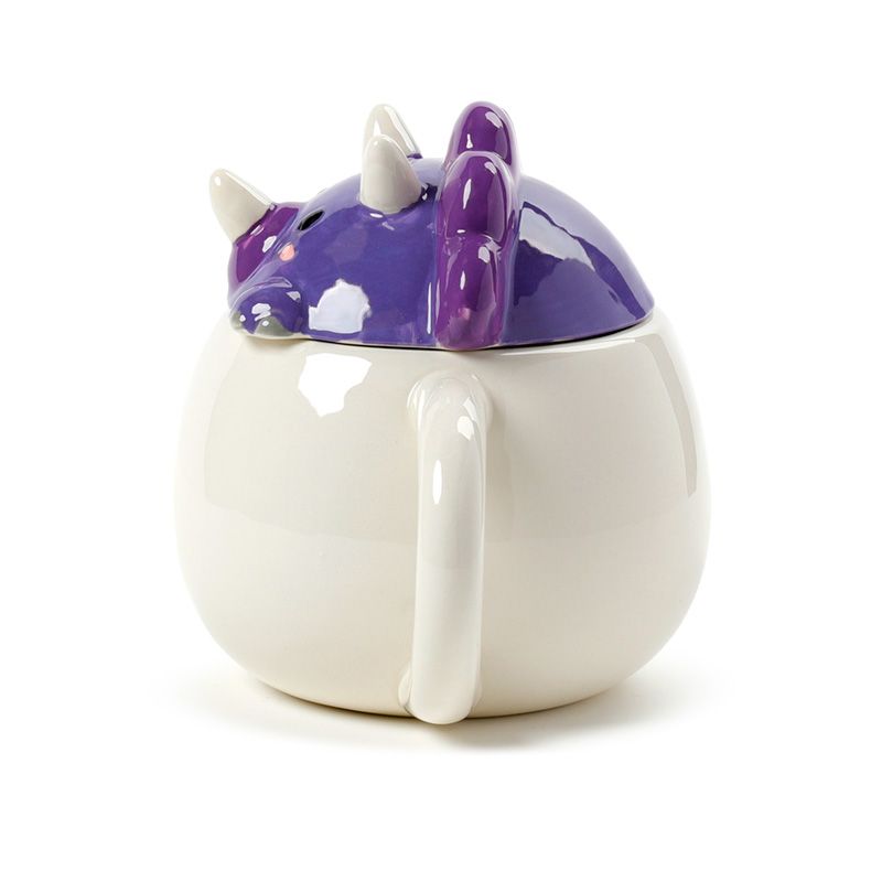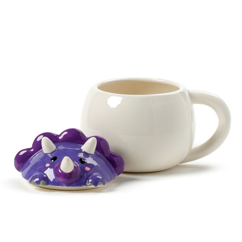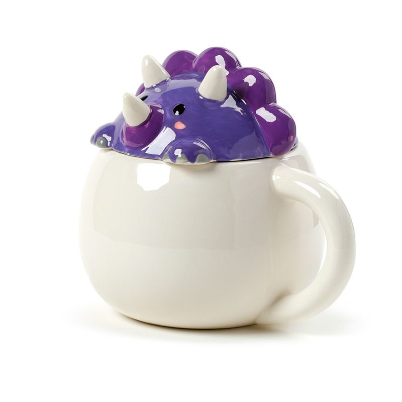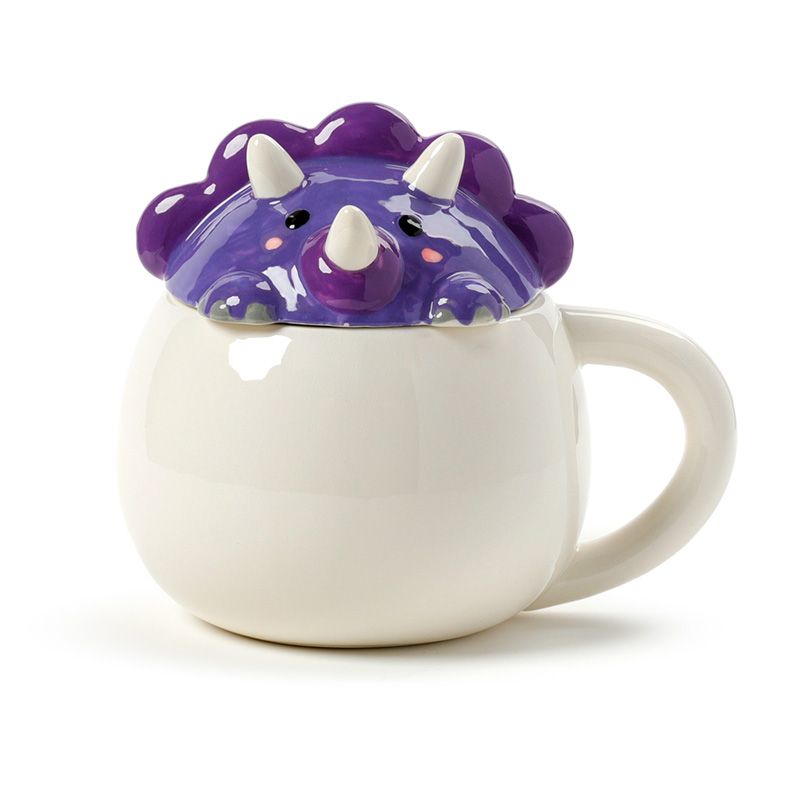 Tazza in Ceramica con Coperchio Sagomato - Dinosauro Viola - Animali Dolci
