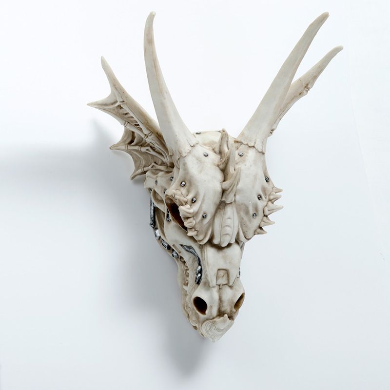 Teschio di Dragone con Decorazioni Metalliche - Grande